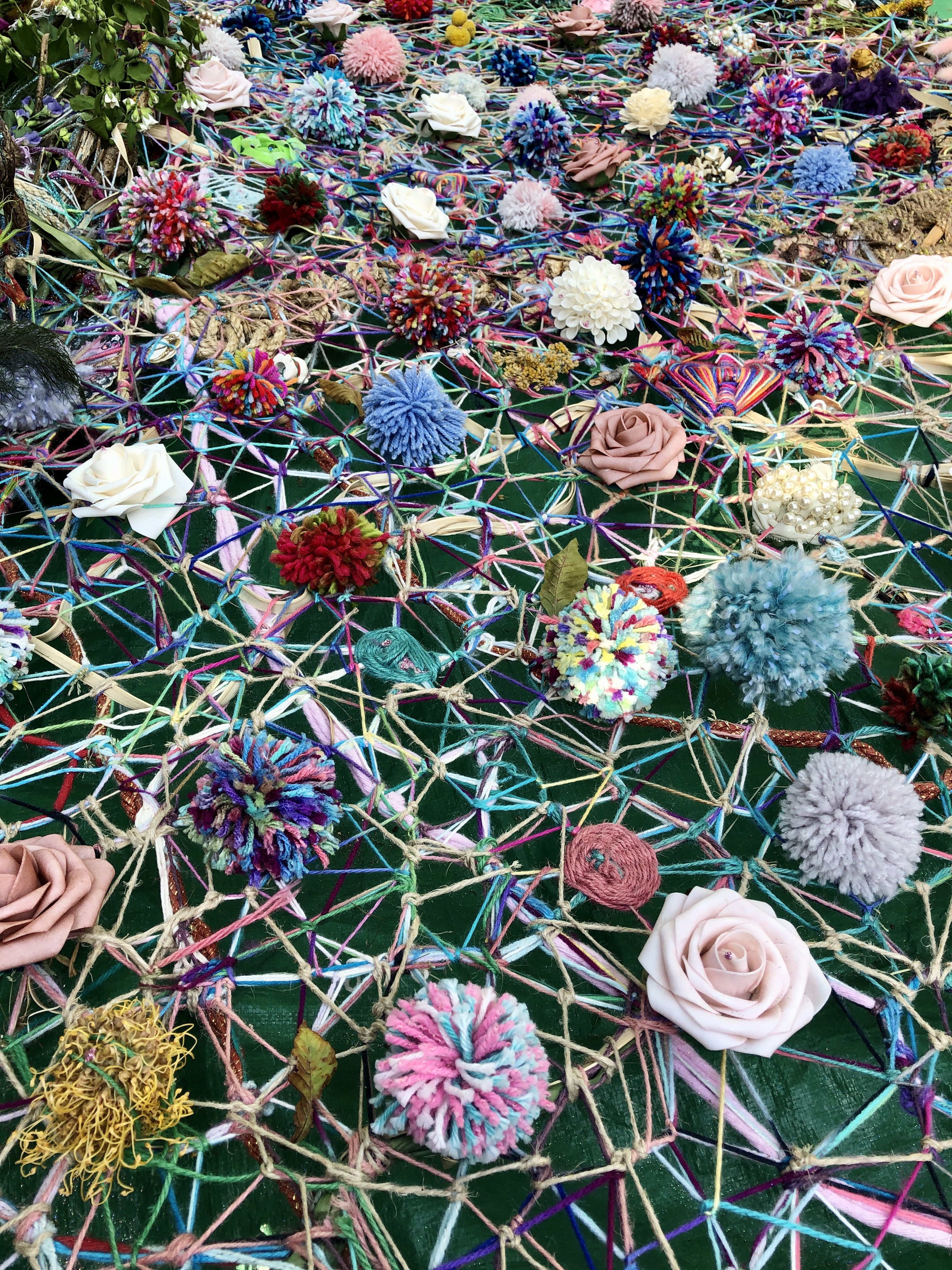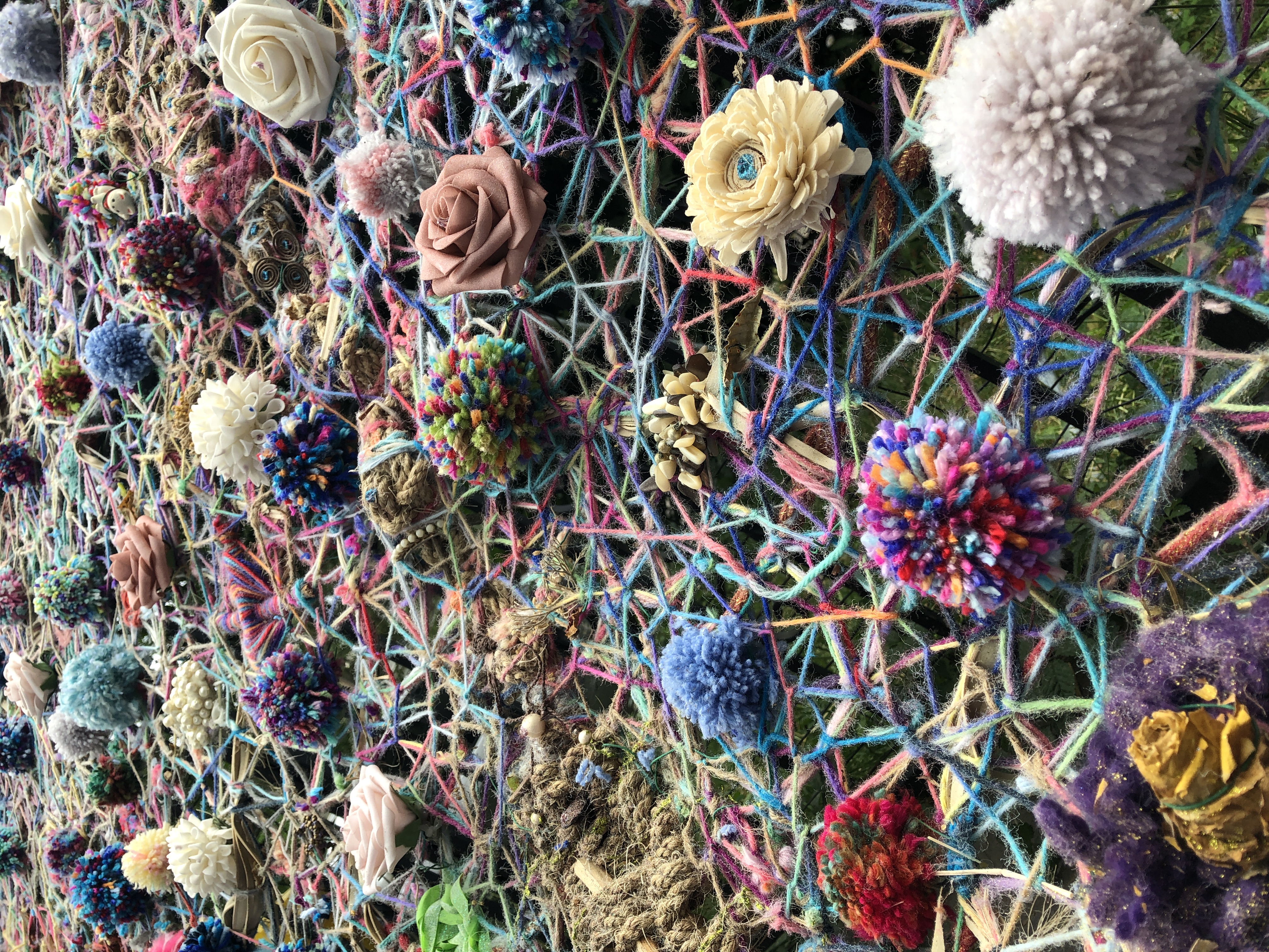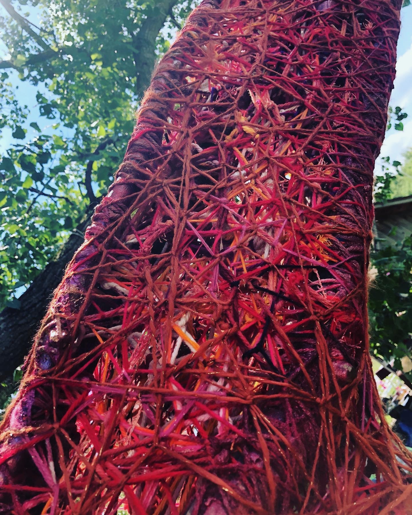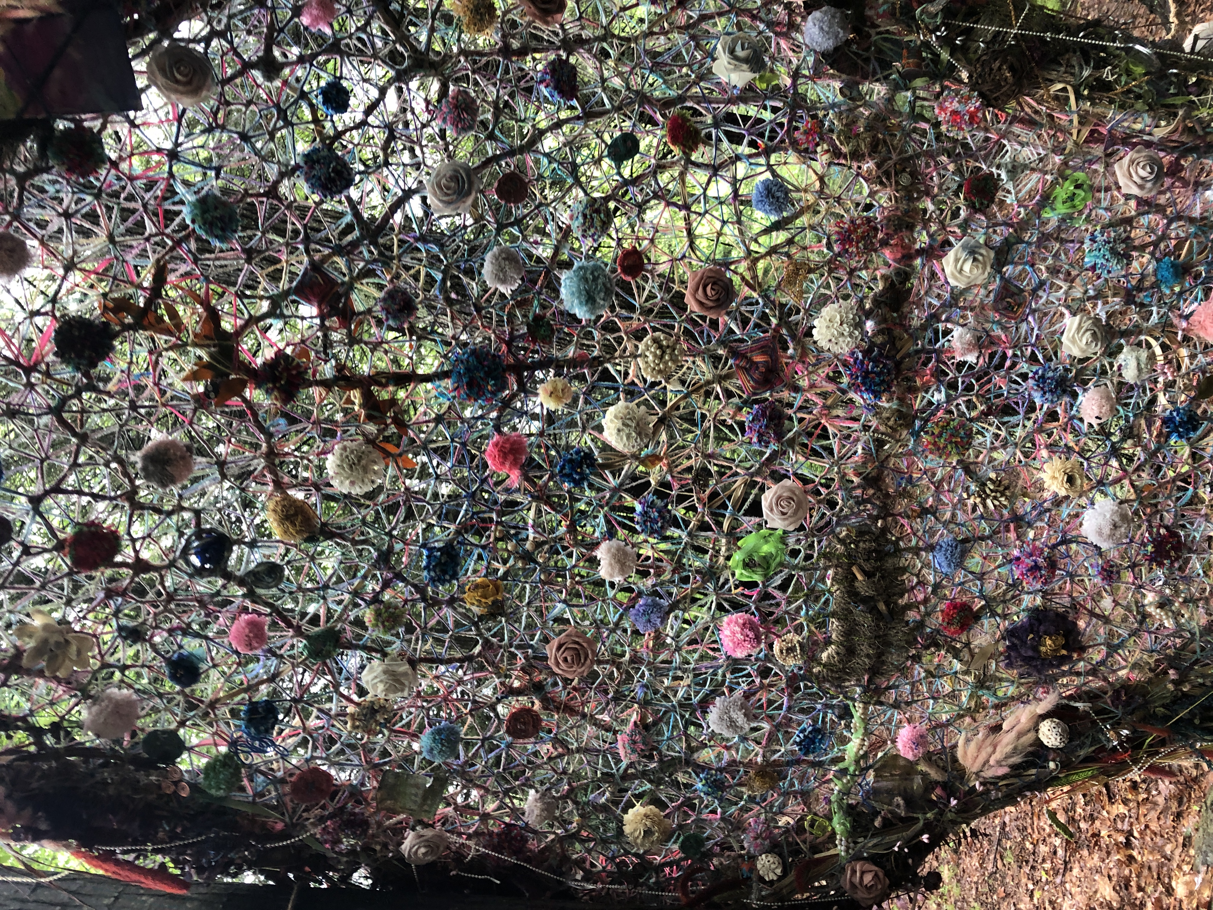 Refugia is an installation built from modular art objects created with fallen branches bound together with rope and yarn. The structure of the installation makes a welcoming and protective space people can enter and pass through, integrating more fully with their environment and themselves. An inquiry into dynamic balance and non-Euclidian building architecture, the installation process uses minimal tools, gravity and no electricity. Refugia is shelter intended to draw viewers into and around its interior and exterior spaces, creating possibilities for refuge and reorientation.