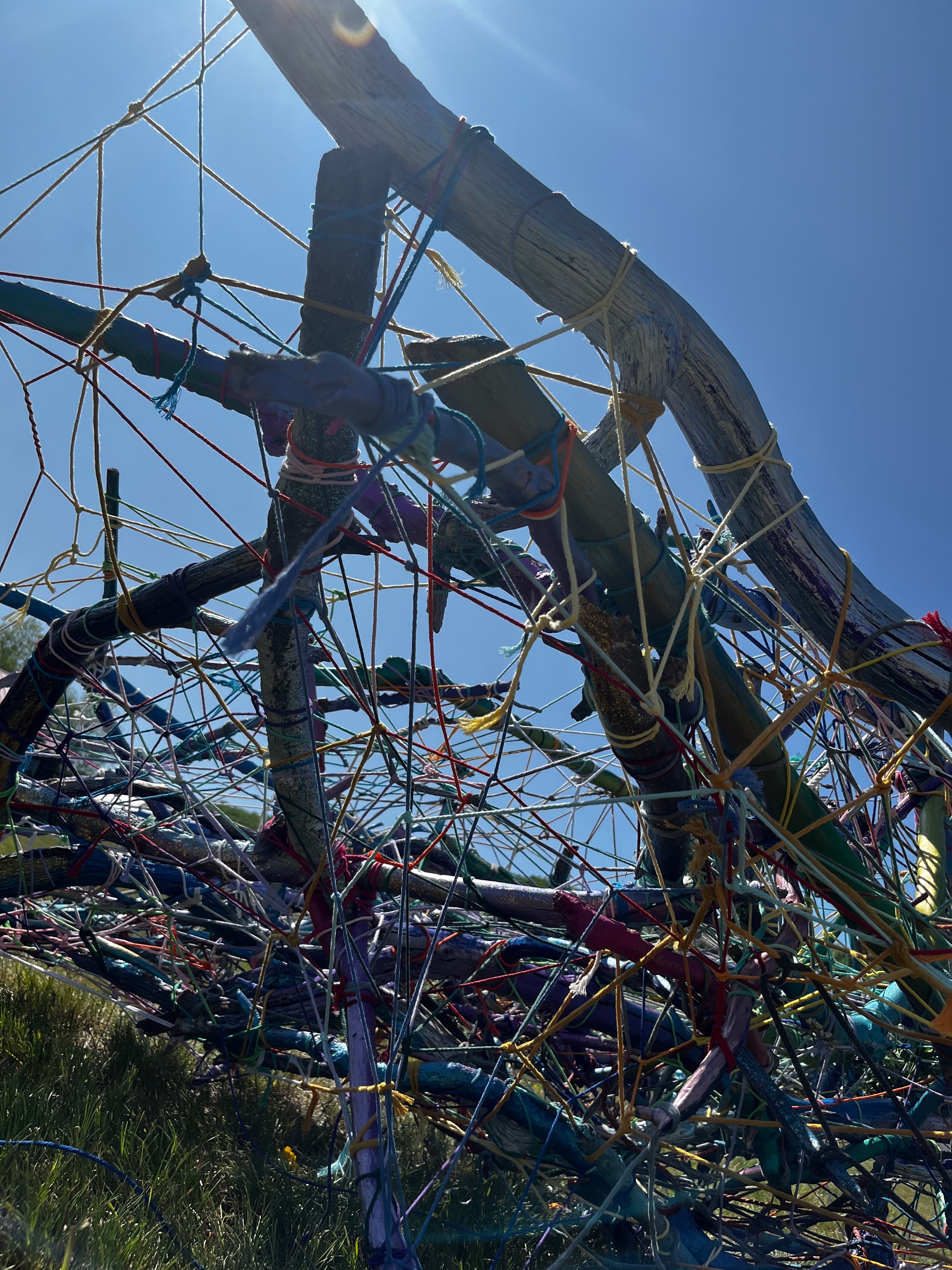I have been building installations since 2017. Most are impermanent. Most recently I have been building modular portals. These portals are the manifestation of my creative process, and reflect my philosophy, research and aesthetic. These mobile kinetic modular art objects are made from fallen branches bound together with ropes. Their structure reflects both an abstract and literal consideration of non-Euclidian, organic development, growth, and balance. The portals are made using minimal tools, no electricity, and manifest creative architectural forms inspired by natural structures and processes like dendritic branching, neural networks, and mycelium. The portals are site responsive and meant to integrate with rather than dominate the landscape.