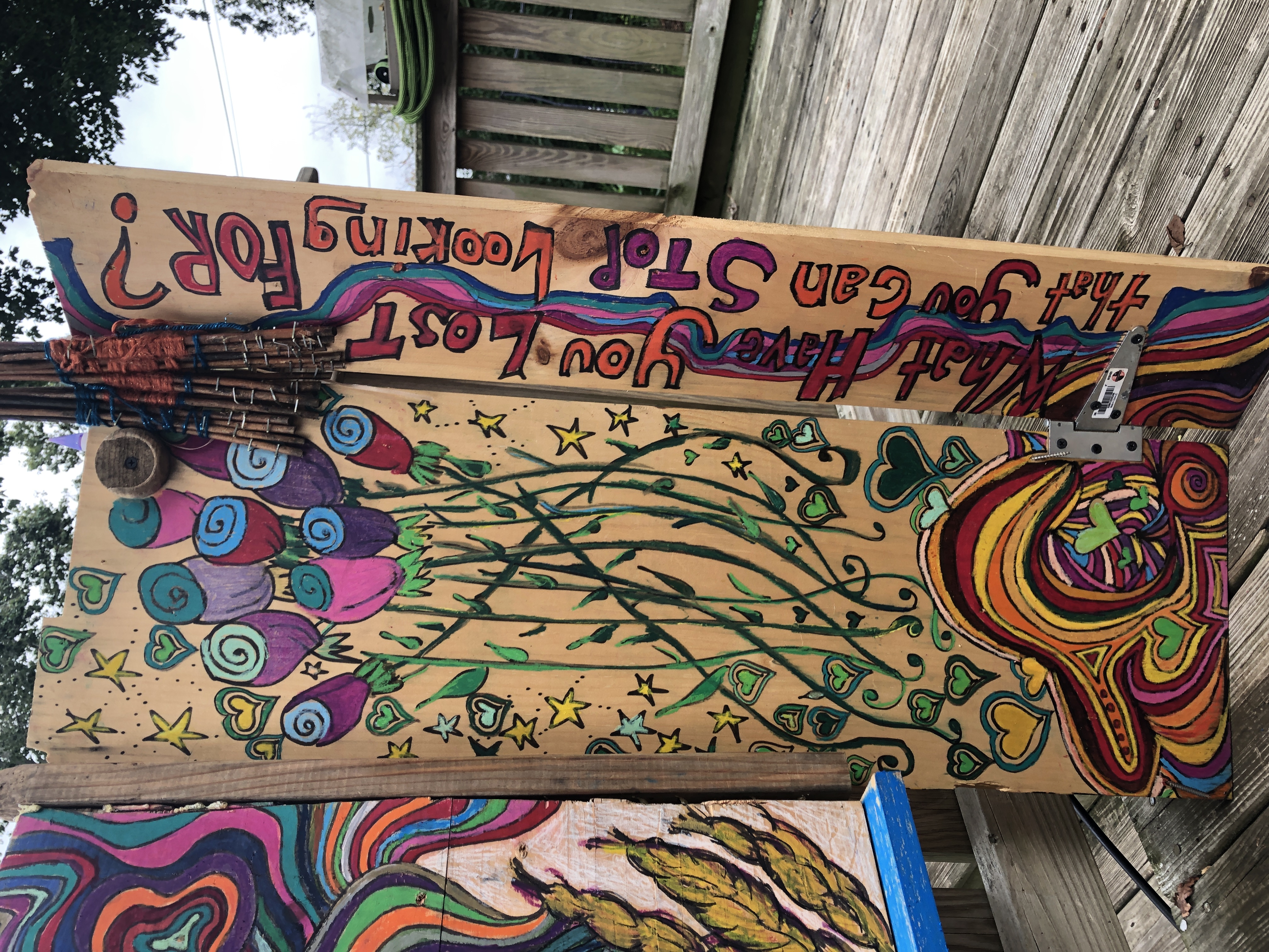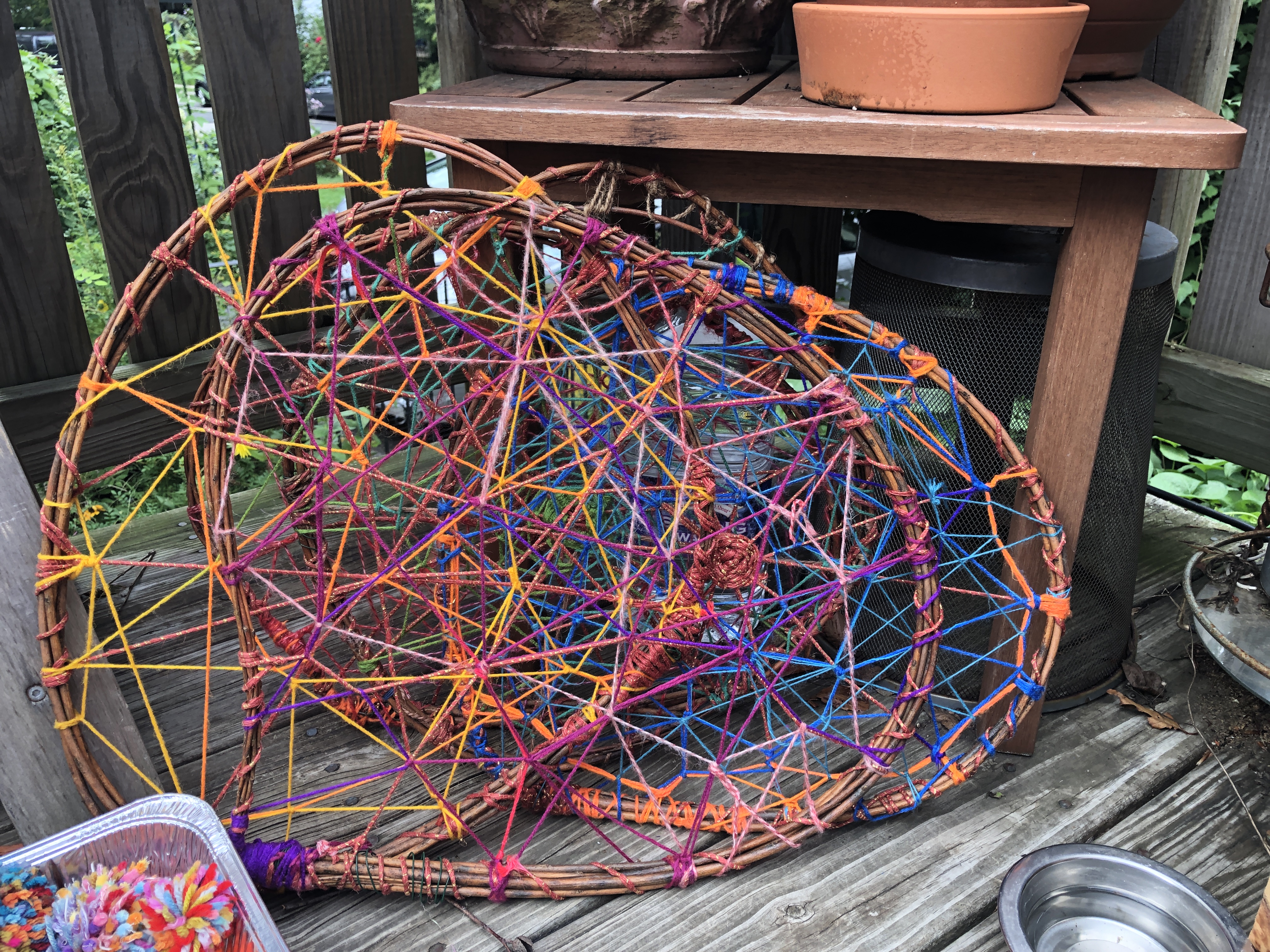Collaborative “Group Portal Weaving,” installation built and burned at three separate events.