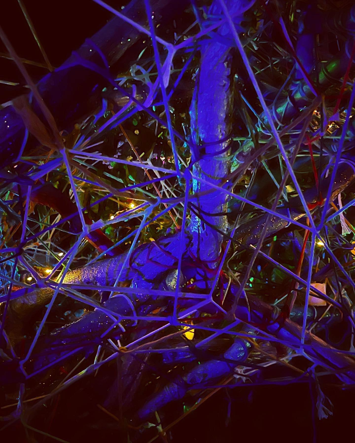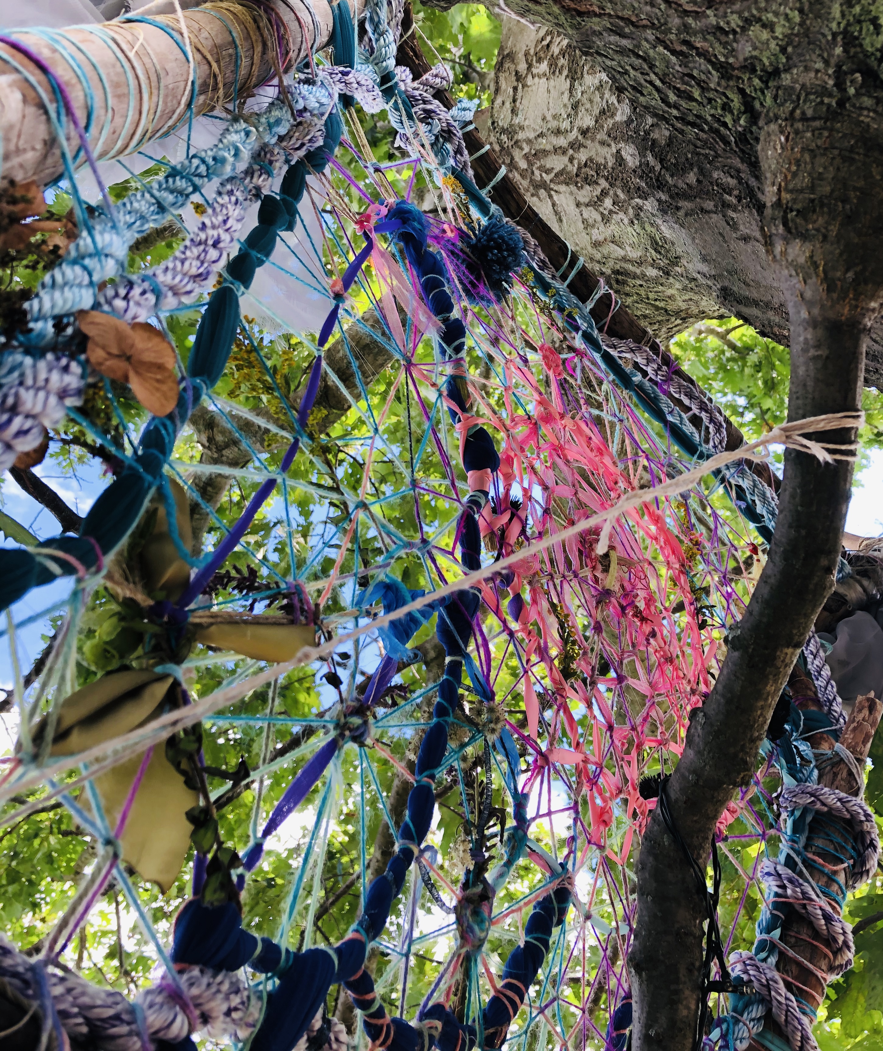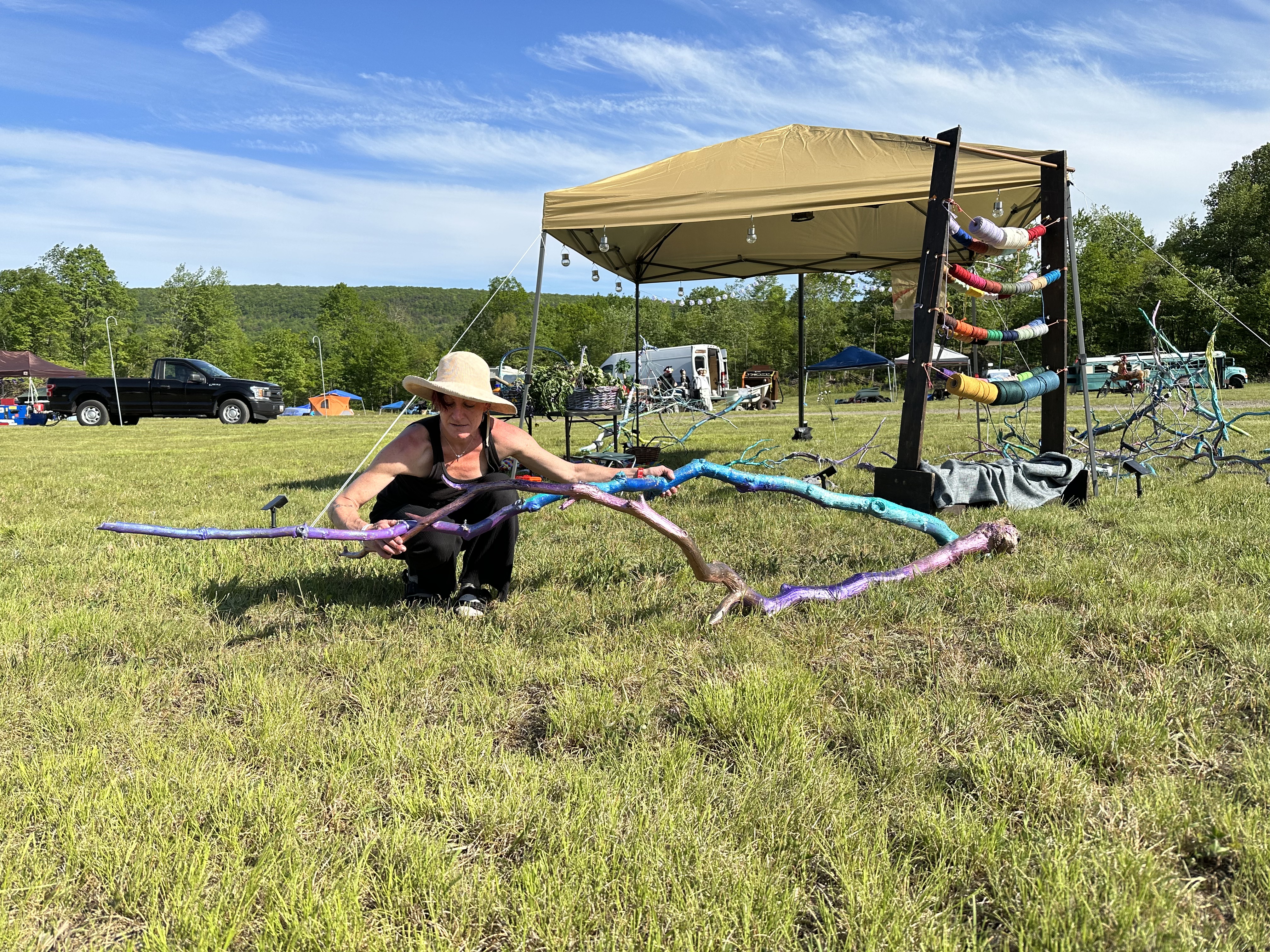 I have been building installations since 2017. Most are impermanent. Most recently I have been building modular portals. These portals are the manifestation of my creative process, and reflect my philosophy, research and aesthetic. These mobile kinetic modular art objects are made from fallen branches bound together with ropes. Their structure reflects both an abstract and literal consideration of non-Euclidian, organic development, growth, and balance. The portals are made using minimal tools, no electricity, and manifest creative architectural forms inspired by natural structures and processes like dendritic branching, neural networks, and mycelium. The portals are site responsive and meant to integrate with rather than dominate the landscape.