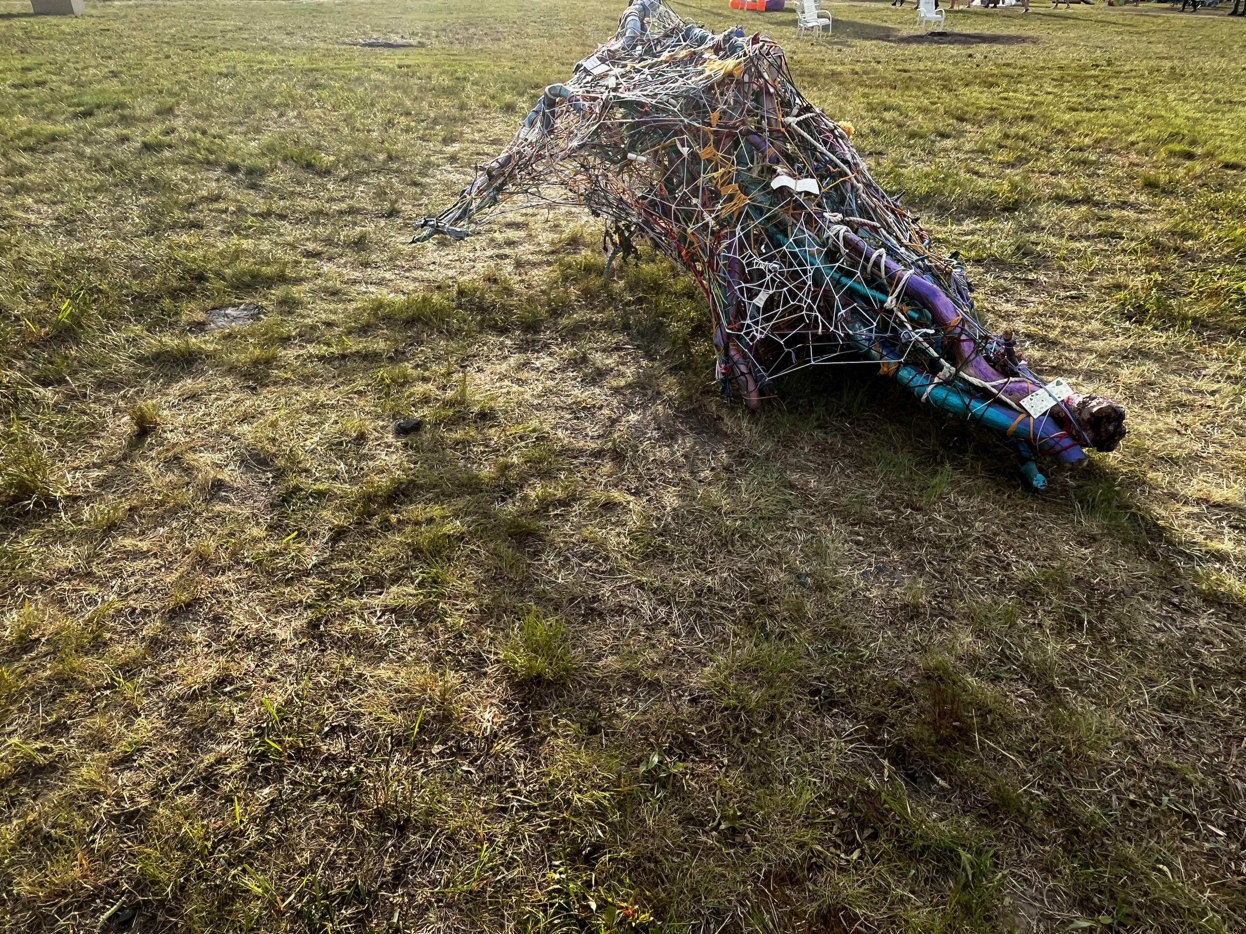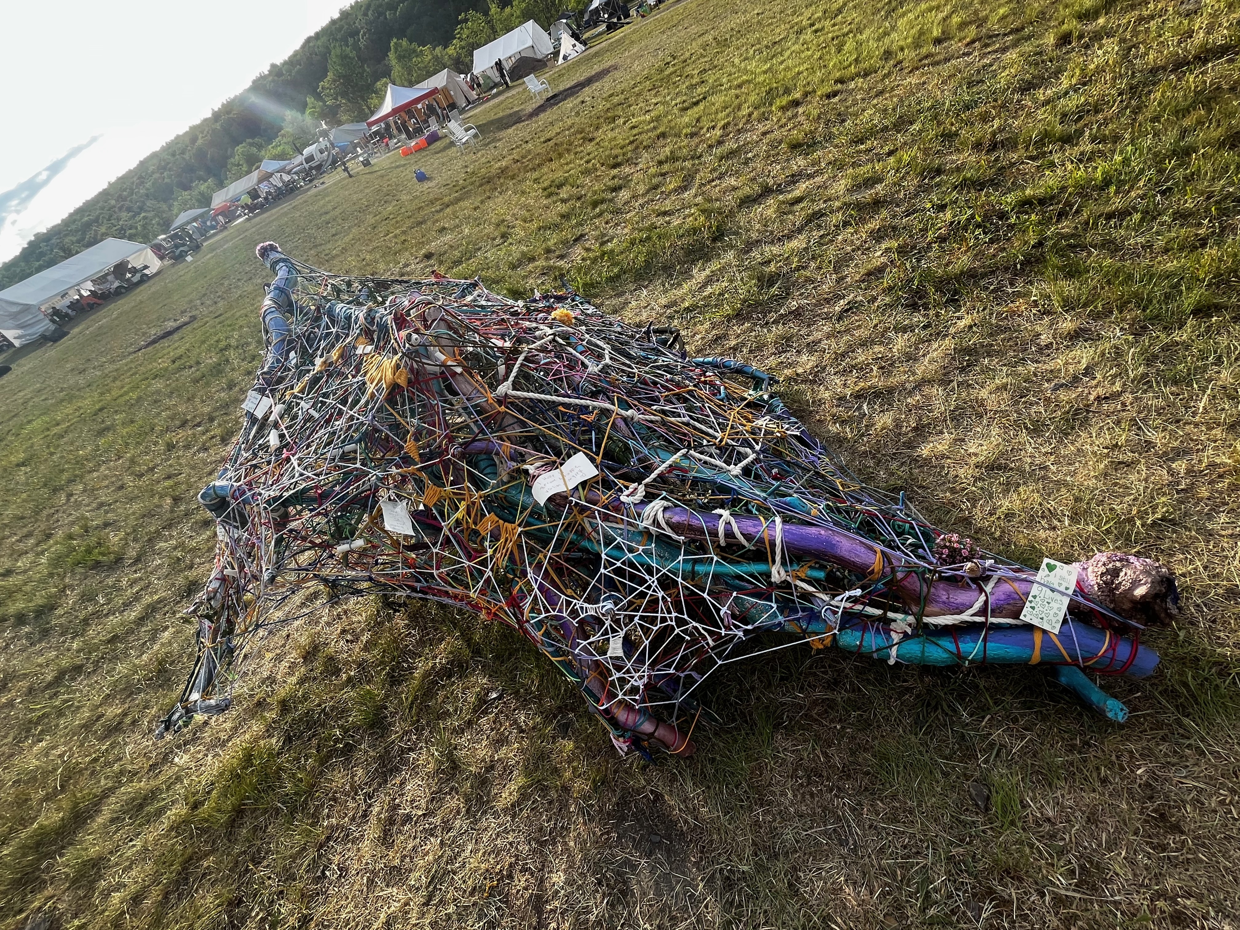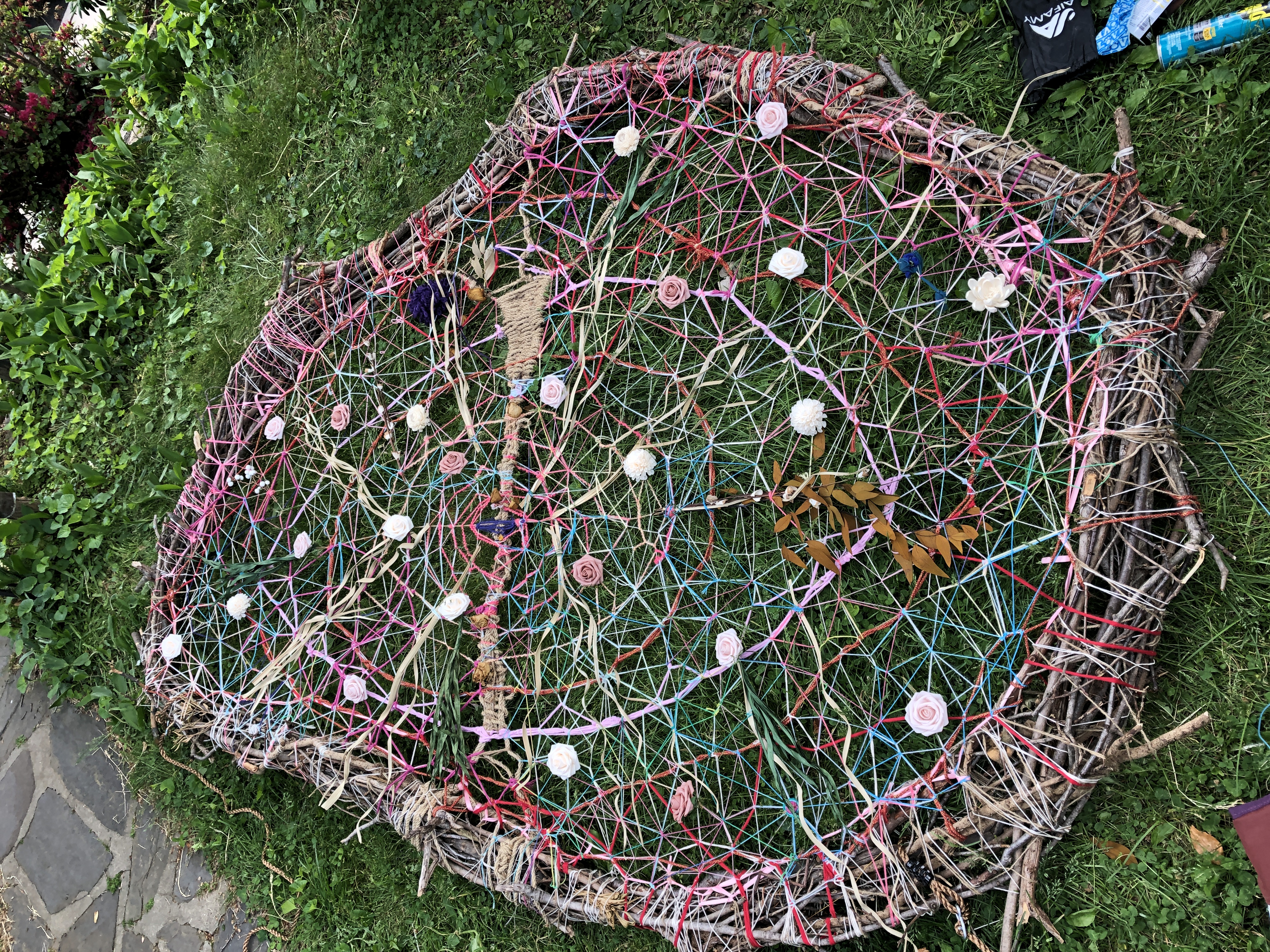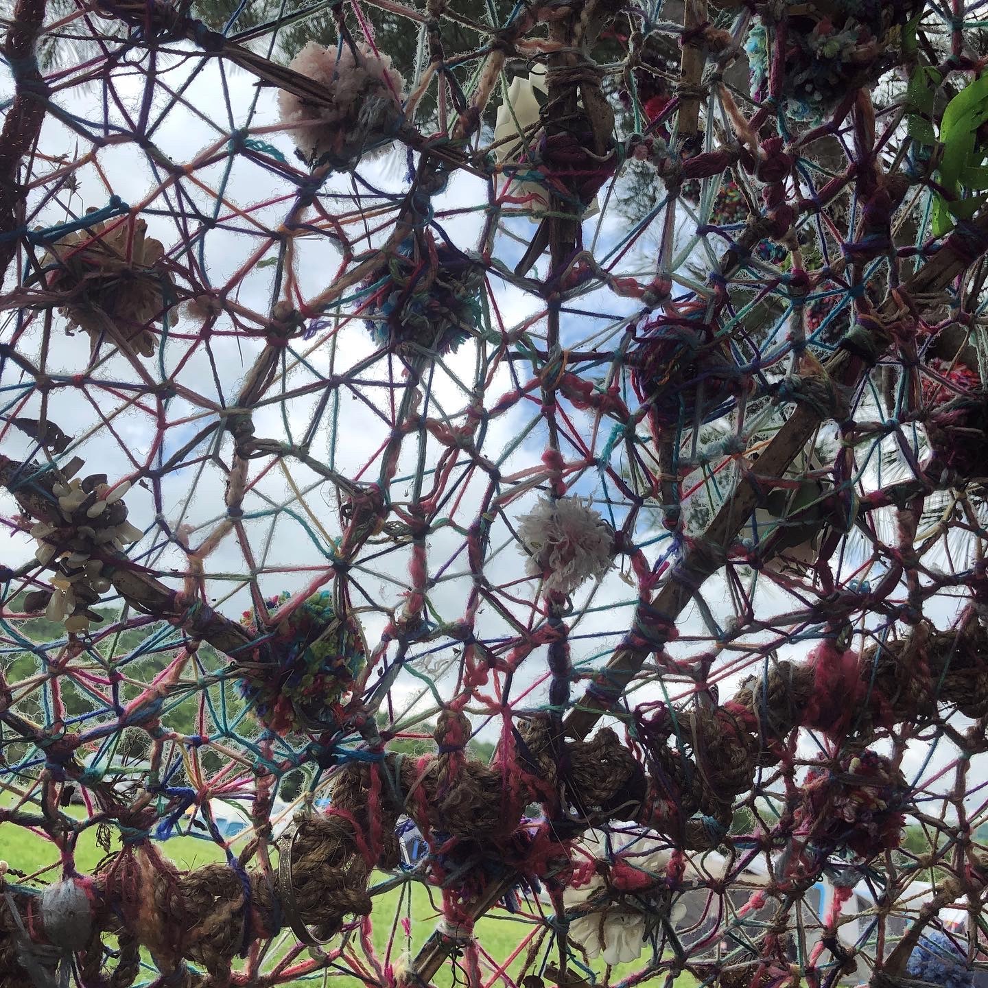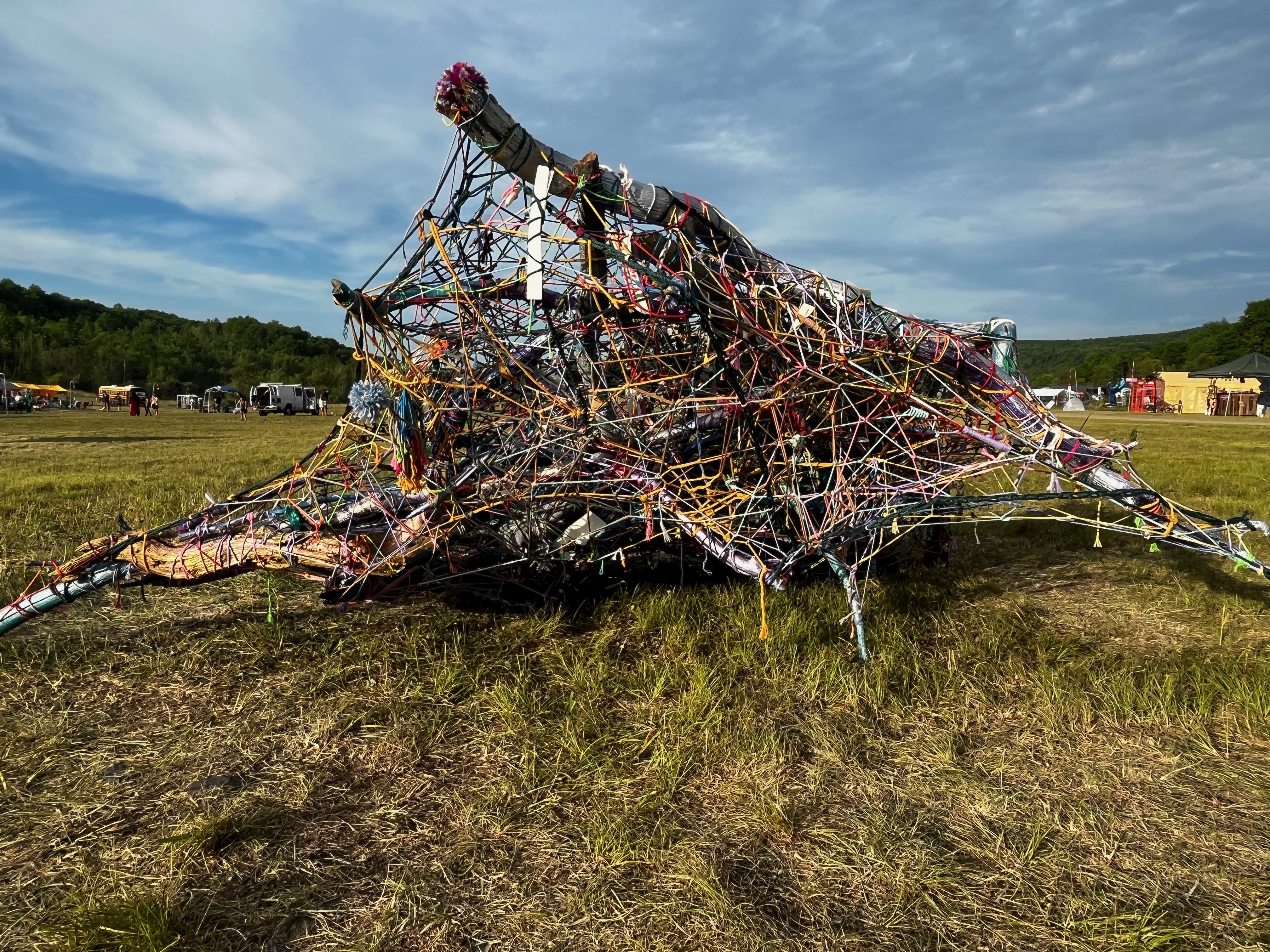 Collaborative “Group Portal Weaving,” installation built and burned at three separate events.