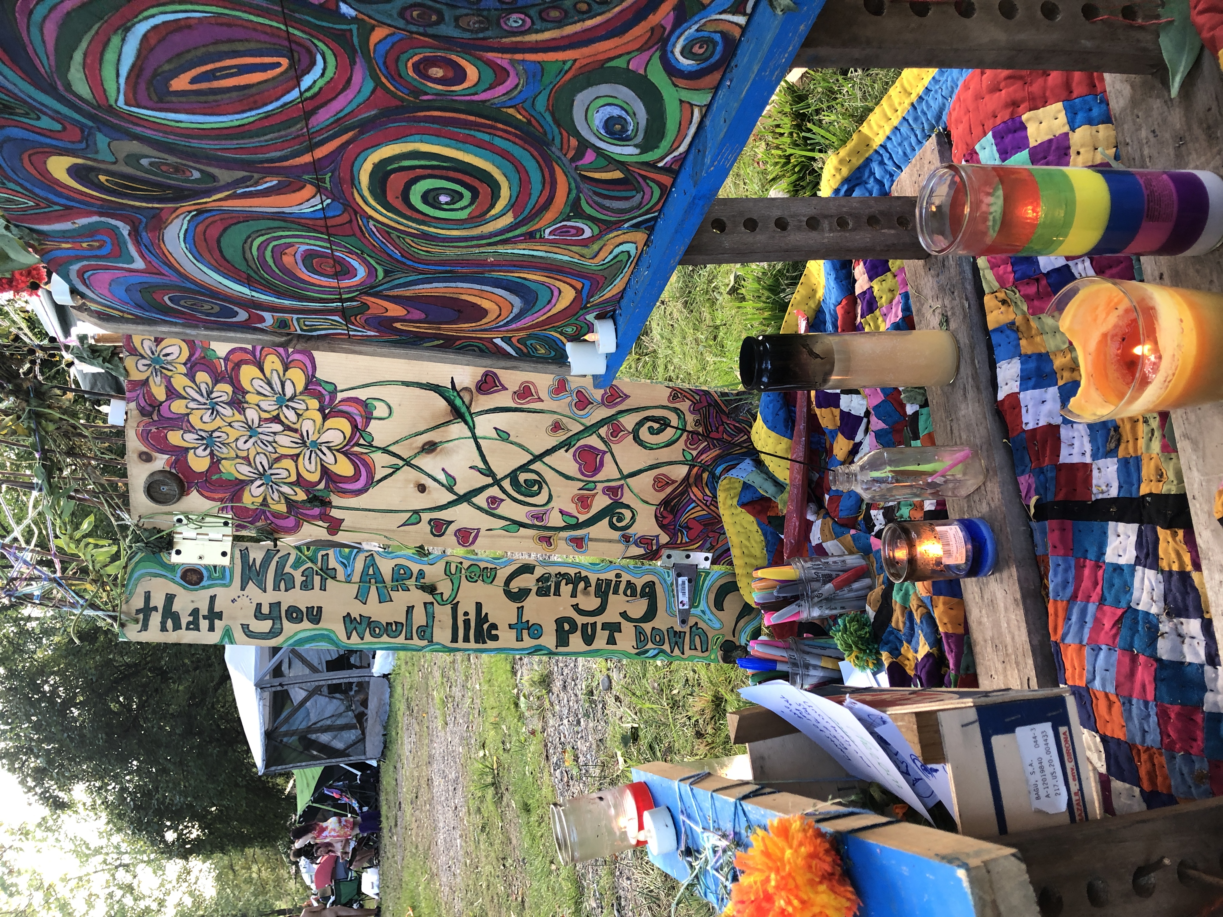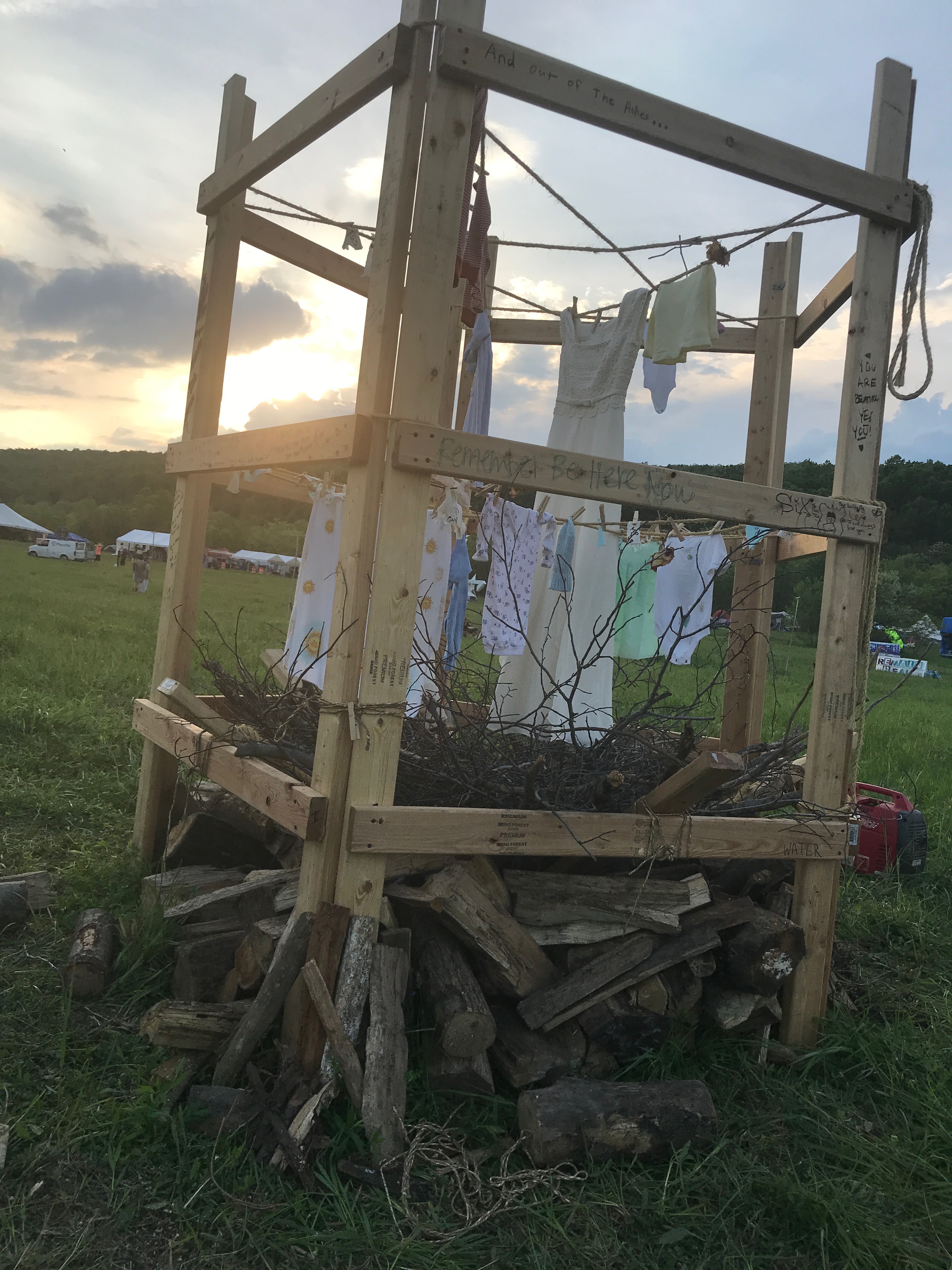 Hekate’s Mercy, art grant recipient, Constellation Burn, West Virginia, October 2018The divine feminine is the embodiment of compassion. She has infinite mercy, and will hold for you what you are ready to give her. Brigid, Freya, Tara, Hera, Ix Chel, Isis, Persephone, Venus, Mary, Hecate- she wants to help you because of her limitless compassion and love. She is here to relieve your suffering by holding onto those things/parts of yourself/memories/burdens that you are ready to hand over to her. Write them on a piece of paper and place them in her satchel and they will burn along with her.