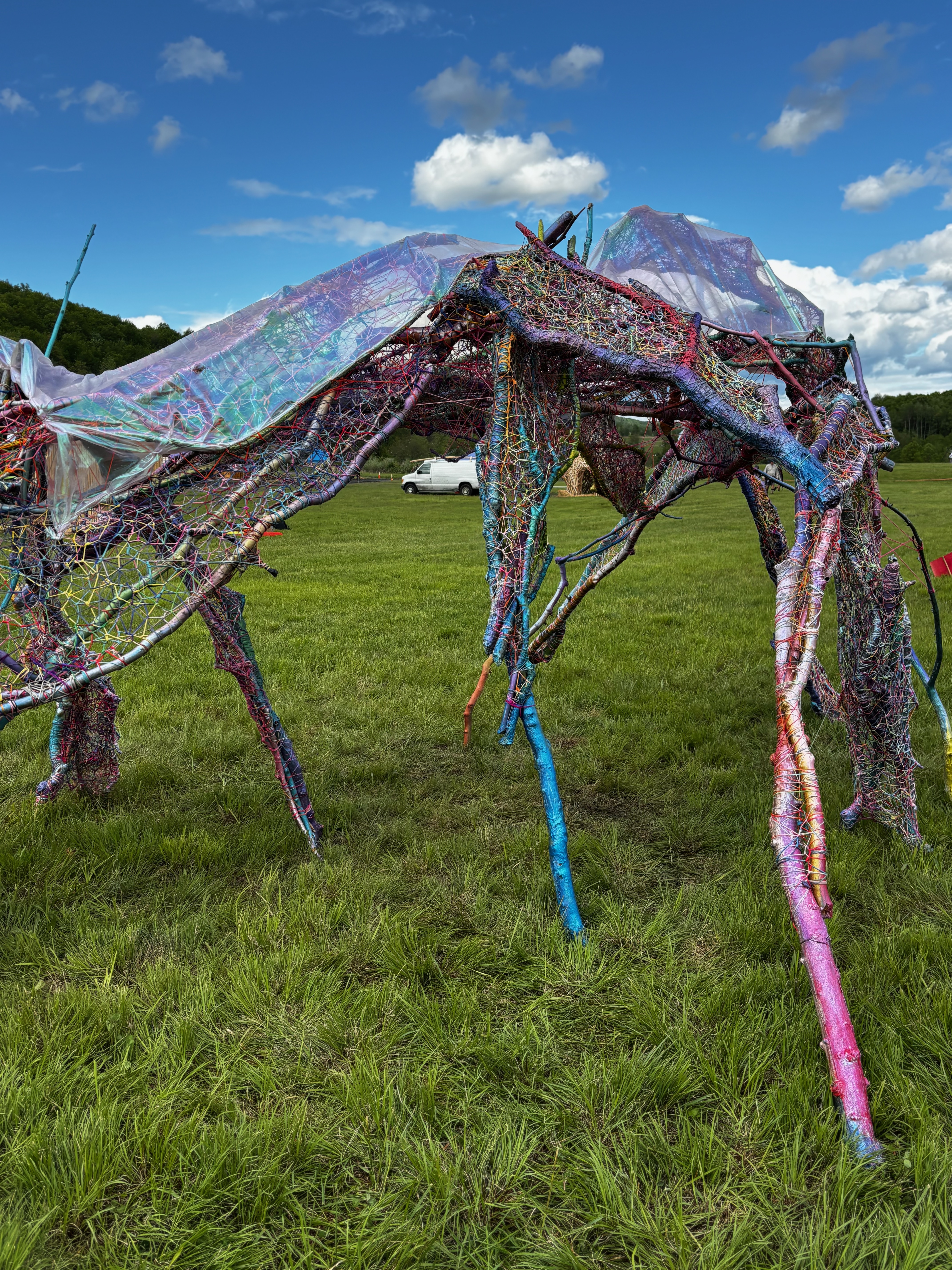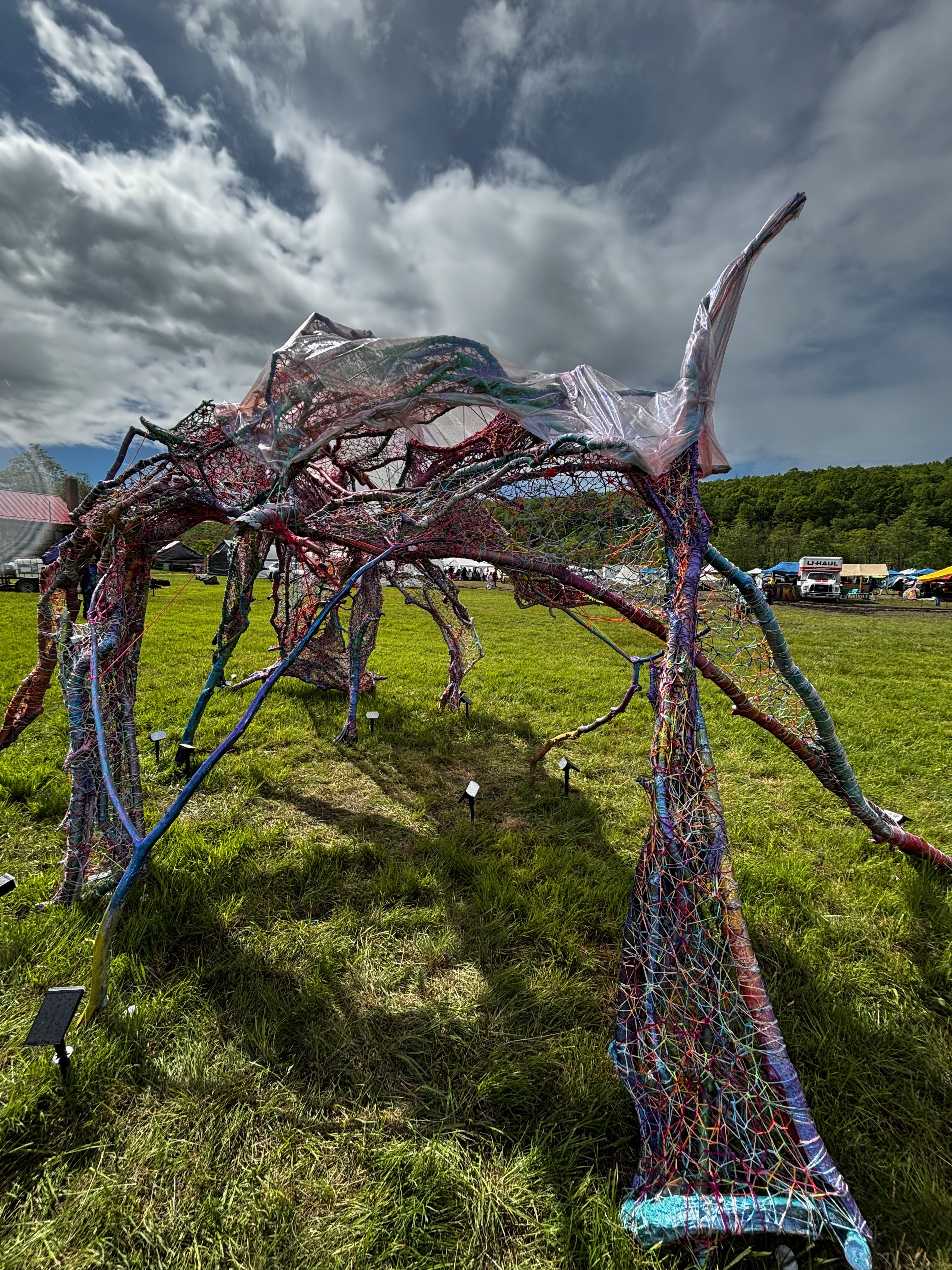 Site-responsive installations made from modular, kinetic, mobile portals, built with minimal tools, no electricity, with a focus on creative architectural forms inspired by natural structures and processes like dendritic branching, neural networks, and mycelium.